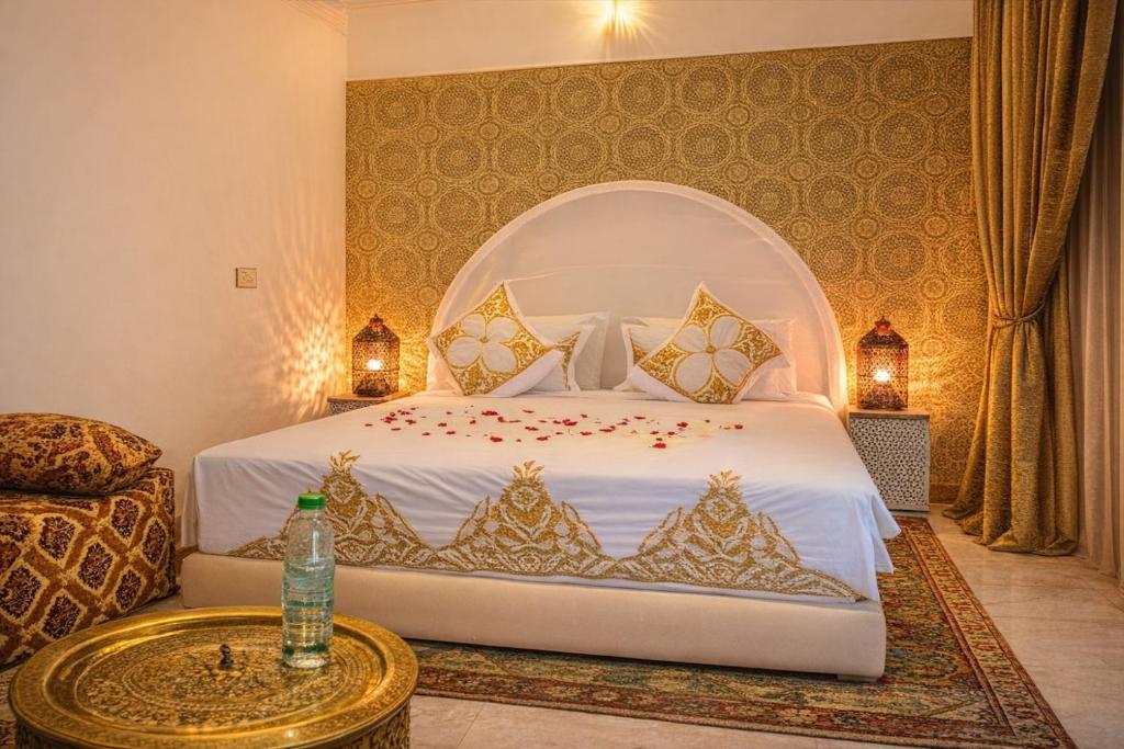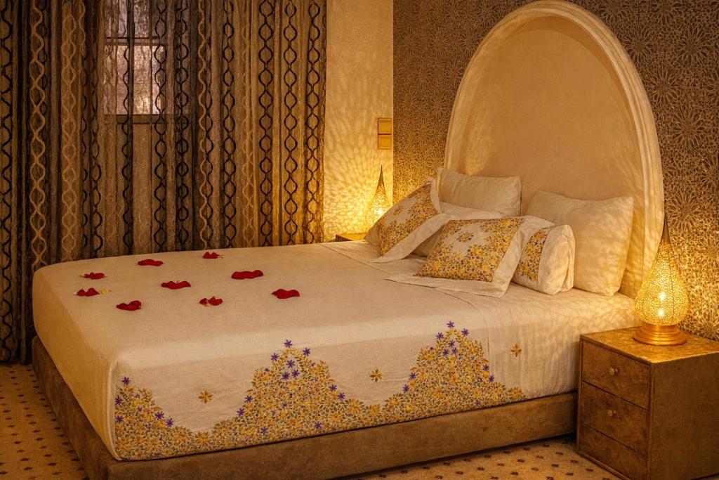 Confortable et fonctionnelle, la Chambre Triple est idéale pour une petite famille ou trois voyageurs. Elle offre une vue paisible sur la cour intérieure du riad, garantissant calme et intimité après une journée de visite.